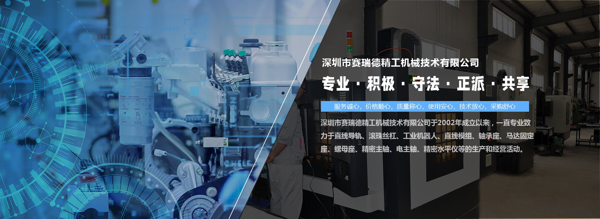 深圳市賽瑞德精工機(jī)械技術(shù)有限公司于2002年成立以來,一直專業(yè)致力于直線導(dǎo)軌、滾珠絲杠、工業(yè)機(jī)器人、直線模組、軸承座、馬達(dá)固定座、螺母座、精密主軸、電主軸、精密水平儀等的生產(chǎn)和經(jīng)營(yíng)活動(dòng)。